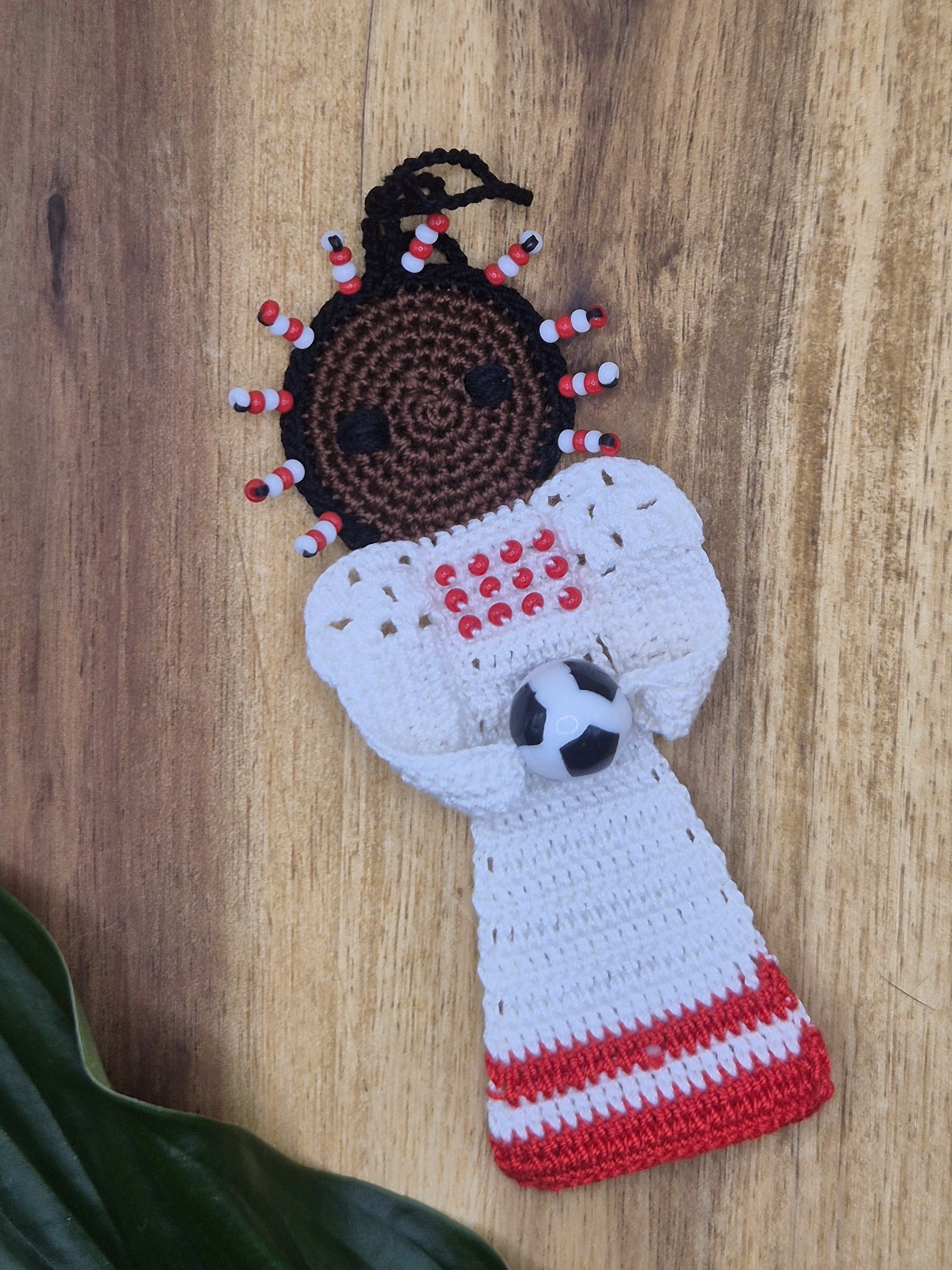 Ein einzelner Fußball-Engel in weiss/rot