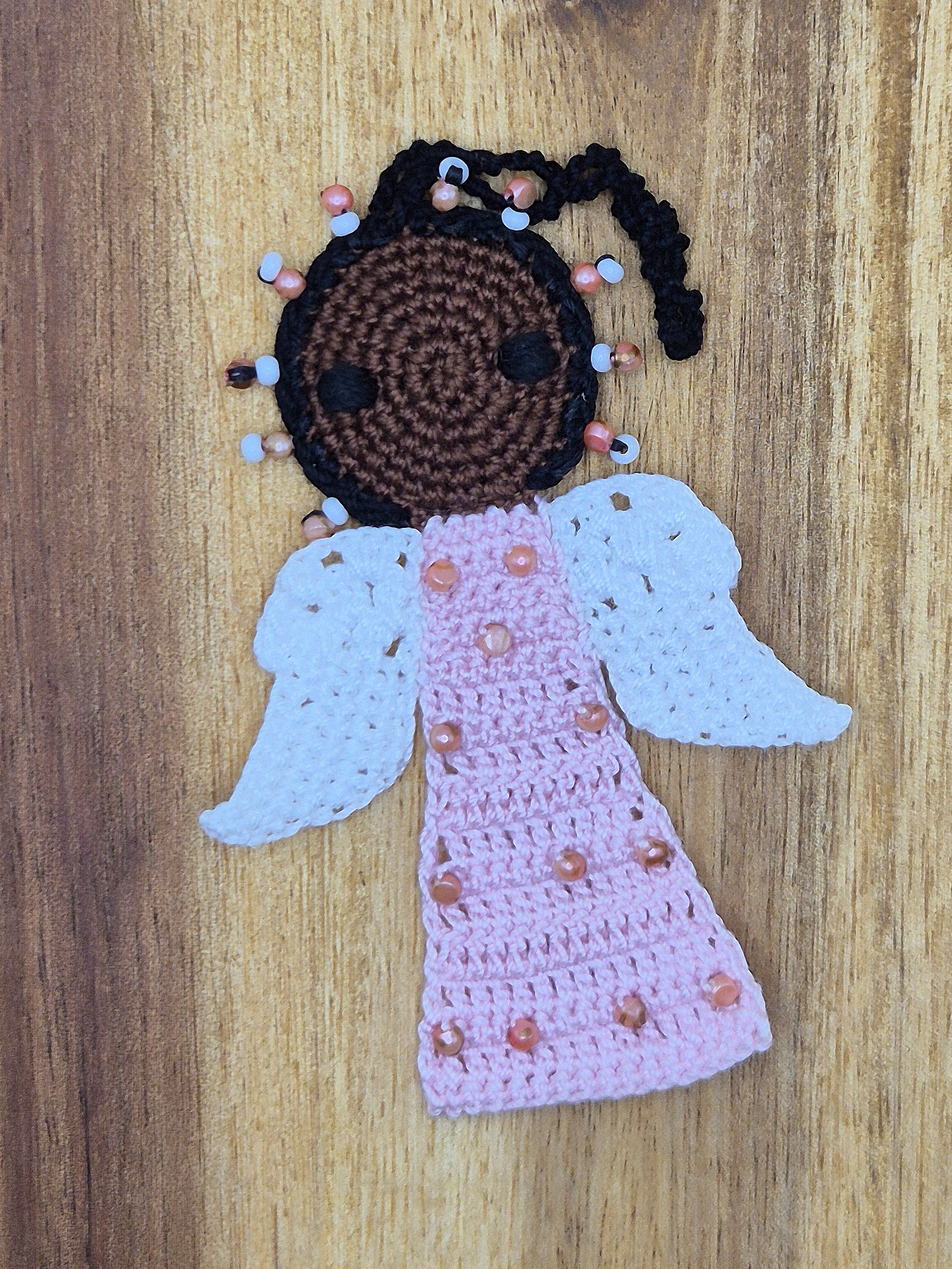 Die Perlen, mit denen die Engel geschmückt werden, sind sogenannte „Maasai-beads“, also Perlen, die auch die Maasai verwenden, um ihren traditionellen Schmuck herzustellen. Diese Perlen kaufen wir in Mombasa und jede neue Farbkombination von Perlen auf den Engeln wird von Christine Rottland eigens zusammengestellt.