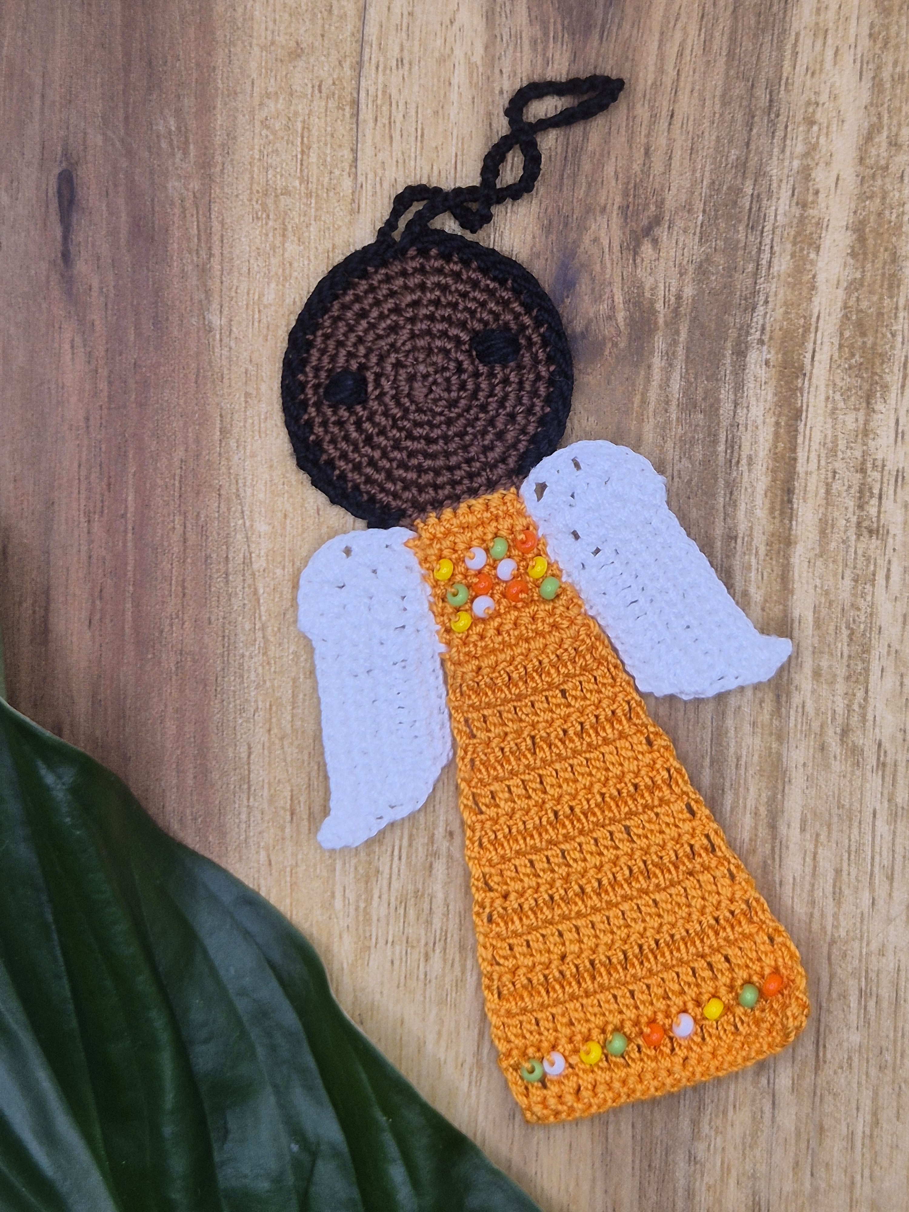 Die Perlen, mit denen die Engel geschmückt werden, sind sogenannte „Maasai-beads“, also Perlen, die auch die Maasai verwenden, um ihren traditionellen Schmuck herzustellen. Diese Perlen kaufen wir in Mombasa und jede neue Farbkombination von Perlen auf den Engeln wird von Christine Rottland eigens zusammengestellt.