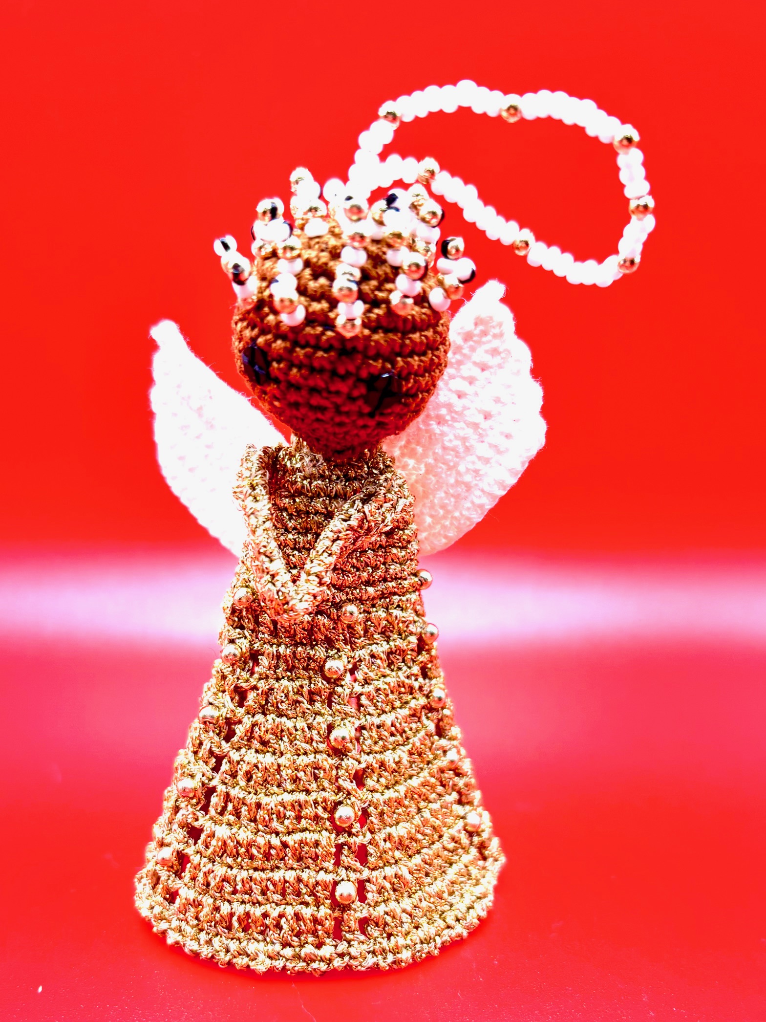 Der Stehengel hat eine Höhe von 9 cm. Er kann auf glatten Oberflächen abgestellt werden und hält sich dank seiner dreidimensionalen Struktur aufrecht, kann aber auch wie gewöhnlich an der Kopfschlaufe z.B. am Weihnachtsbaum aufgehangen werden